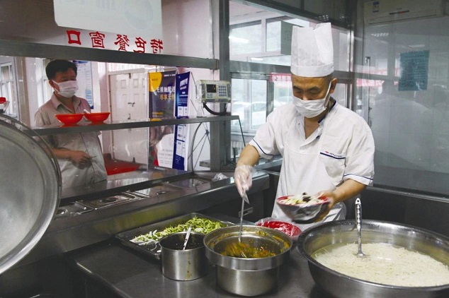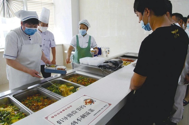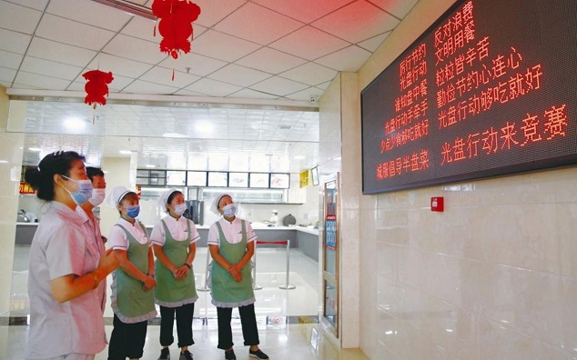 煉鋼服務(wù)區(qū)炊事人員在觀看宣傳展板。 作為負責(zé)鞍山區(qū)域職工餐飲服務(wù)的鞍鋼現(xiàn)代城市服務(wù)公司,堅決響應(yīng),迅速將貫徹習(xí)近平總書記“厲行節(jié)約、反對浪費”指示精神轉(zhuǎn)化為自覺行動,在所屬廠內(nèi)及人才公寓等84個食堂的售賣窗口張貼相關(guān)內(nèi)容的宣傳海報320張,并在就餐大廳擺放展板240個、展架80個,倡導(dǎo)全體就餐職工做“光盤達人”,營造“浪費可恥、節(jié)約為榮”的就餐氛圍,并把堅決制止餐飲浪費行為納入到“四比一創(chuàng)”勞動競賽中,服務(wù)區(qū)管理人員自覺擔(dān)當(dāng)“文明餐桌”監(jiān)督員,對餐飲浪費行為進行制止,從傳承勤儉節(jié)約美德、文明理性消費等方面加以引導(dǎo)。