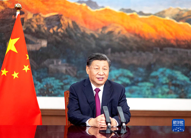 5月18日,國家主席習近平在慶祝中國國際貿(mào)易促進委員會建會70周年大會暨全球貿(mào)易投資促進峰會上發(fā)表視頻致辭。新華社記者 李學仁 攝