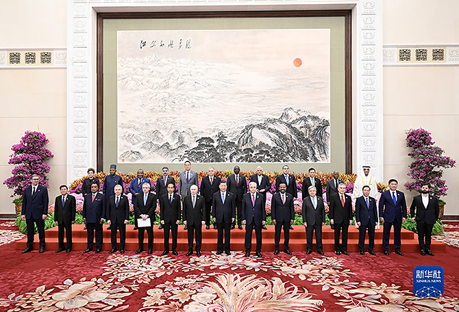 阿根廷總統(tǒng)費爾南德斯,智利總統(tǒng)博里奇,剛果共和國總統(tǒng)薩蘇,印度尼西亞總統(tǒng)佐科,哈薩克斯坦總統(tǒng)托卡耶夫,肯尼亞總統(tǒng)魯托,老撾國家主席通倫,蒙古國總統(tǒng)呼日勒蘇赫,俄羅斯總統(tǒng)普京,塞爾維亞總統(tǒng)武契奇,斯里蘭卡總統(tǒng)維克拉馬辛哈,土庫曼斯坦民族領袖、人民委員會主席別爾德穆哈梅多夫,烏茲別克斯坦總統(tǒng)米爾濟約耶夫,越南國家主席武文賞,柬埔寨首相洪瑪奈,埃及總理馬德布利,埃塞俄比亞總理阿比,匈牙利總理歐爾班,莫桑比克總理馬萊阿內,巴基斯坦總理卡卡爾,巴布亞新幾內亞總理馬拉佩,泰國總理賽塔,尼日利亞副總統(tǒng)謝蒂馬,阿聯(lián)酋總統(tǒng)特別代表、哈伊馬角酋長國酋長卡西米,法國總統(tǒng)特別代表、前總理拉法蘭,希臘總理高級代表、發(fā)展部部長斯克雷卡斯等20多國國家元首、政府首腦、高級代表,以及聯(lián)合國秘書長古特雷斯、新開發(fā)銀行行長羅塞夫等國際組織負責人出席開幕式。
