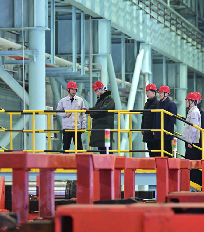 1月22日至24日,中共中央總書記、國家主席、中央軍委主席習近平冒著嚴寒來到遼寧,看望慰問基層干部群眾。這是23日下午,習近平在本溪市考察本鋼板材冷軋總廠第三冷軋廠車間。新華社記者 謝環馳 攝