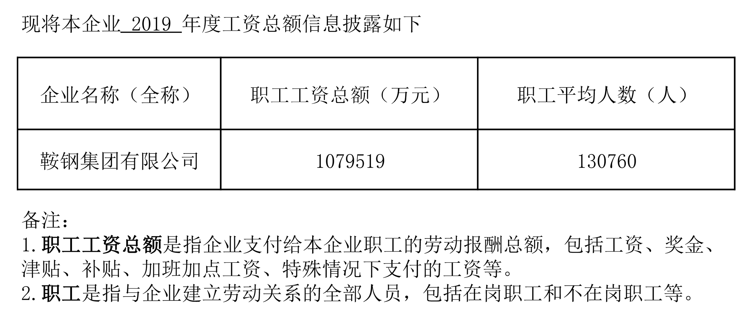 鞍鋼集團有限公司2019年度工資總額信息披露